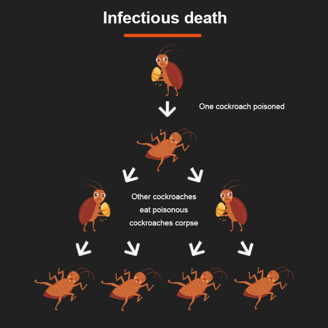 Roaches ingest the gel, carry it back through the colony, and eliminate the ones you never see.